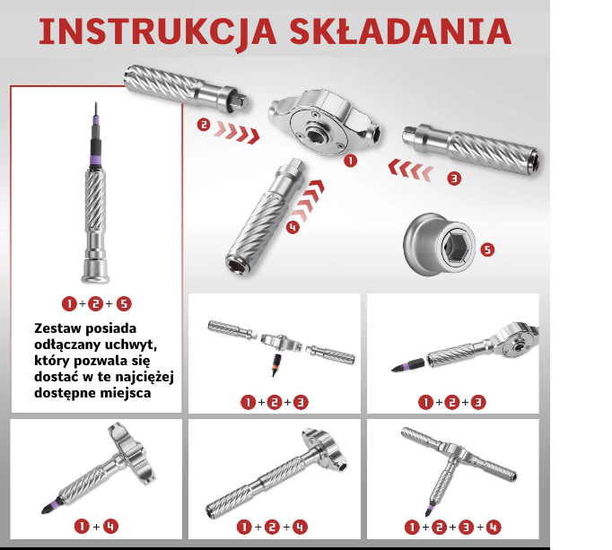✅ Szybka wymiana końcówek — nasadka montowana magnetycznie pozwala błyskawicznie zmieniać bity bez użycia dodatkowych narzędzi.